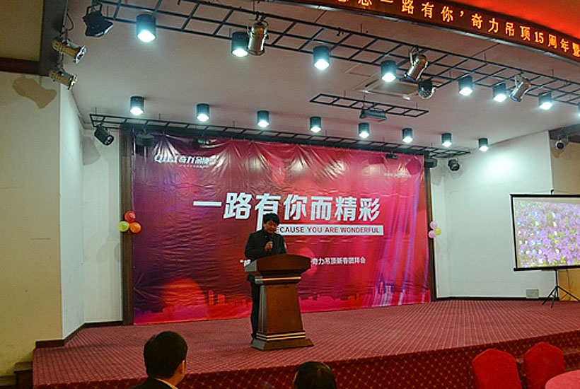 隨后,奇力營銷系統代表進行了年度營銷工作總結發言,對2014年度各項工作綜合指標的顯著提升表示肯定,尤其對整年銷售量較同行的逆勢提升表示高度肯定。營銷總監以懇切的口吻,對奇力一線同事的辛勤作業、車間同事的加班加點、銷售部、市場部與客服等諸多部門的通力協作等等表達了敬意和感謝。最后,營銷總監頒發了4位營銷精英獎項,更進一步強調,在已經到來的2015,奇力上下將繼續并肩同行,創下一個奇力傳奇!