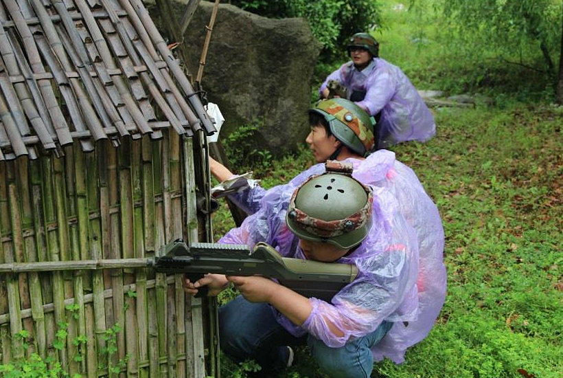 11日,奇力所有特訓人員起個大早,趕往拓展的硝煙戰場——竹海荷花山。適逢細雨漣漣,地上露水淙淙,卻難以掩蓋戰場的陣陣殺氣。紅外線感應真人CS野戰,在山野之中,一觸即發。