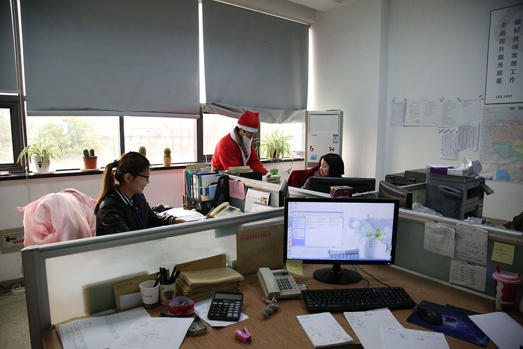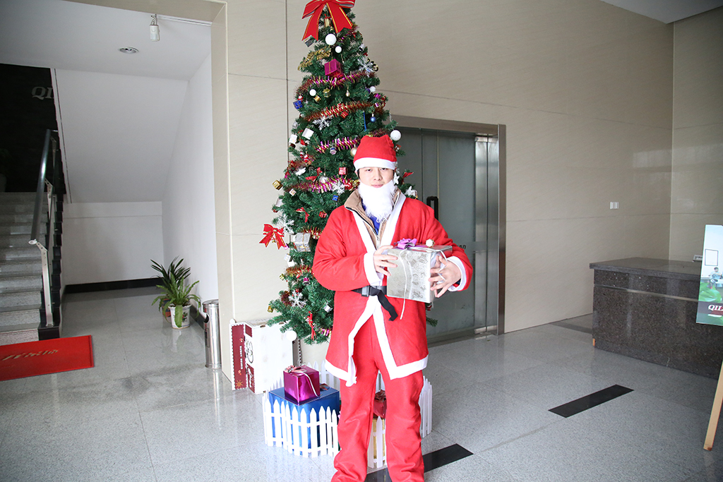 奇力家人也不落人后,在這個歡樂的節日里,身穿紅袍、頭戴紅帽的白胡子圣誕老人出現了,雖然他沒有駕著鹿拉的雪橇,沒有爬煙囪,但是他帶著禮物、歡樂、幸運,為大家送來了祝福。