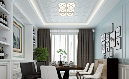 充滿韻味的大板吊頂為客廳打造出古典的時尚感,那是時光沉淀下來的痕跡,舉杯與美式風(fēng)情邂逅浪漫的約會。