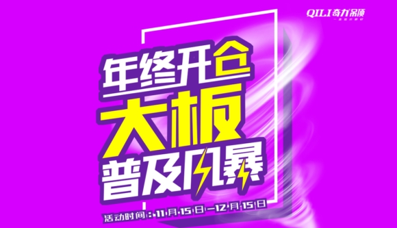 奇力“年終開倉 大板普及風(fēng)暴”于今日大勢(shì)啟動(dòng)!本次啟動(dòng)會(huì)以線上直播的方式全國傳播,得到了廣大經(jīng)銷商家人們的支持與參與! 活動(dòng)時(shí)間:11.15-12.15