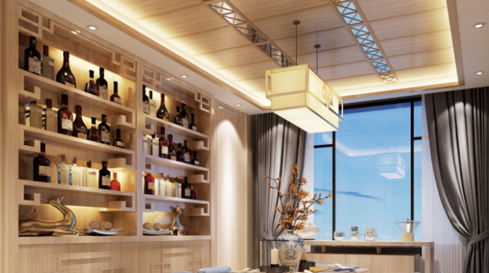 現(xiàn)代感十足的吊頂設(shè)計(jì)、扣板上簡(jiǎn)潔的圖案,更是給人以視覺(jué)上的完美享受。這種極簡(jiǎn)風(fēng)格的餐廳設(shè)計(jì)更適合快節(jié)奏的生活。