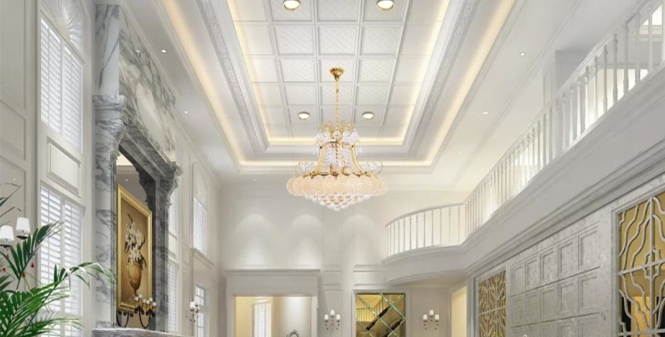 挑高客廳的空間大,如果頂部裝飾少,會(huì)顯得很空洞??梢栽陧敳垦b上集成吊頂,來(lái)彰顯你的品味。注意在選擇集成吊頂?shù)臅r(shí)候要和家中的整體風(fēng)格進(jìn)行匹配。